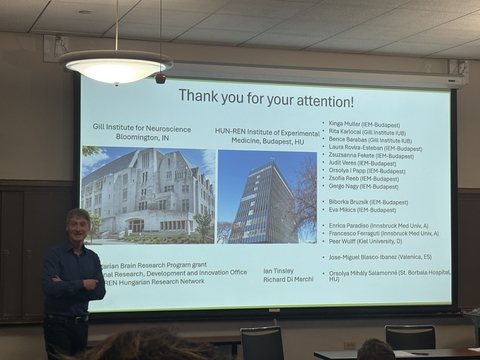 Dr. Norbert Hajos works at the Gill Institue for Neuroscience in the Department of Psychological and Brain Sciences at Indiana University in Bloomington as well as the HUN-REN Institute of Experimental Medicine in Budapest, Hungary. Dr. Fadok invited Dr. Hajos to speak at Tulane's Brain Institute Seminar where Dr. Hajos's talk titled "Circuit mechanisms underlying conditioned fear learning in the amygdala" went in depth about proposed additions to fear conditioning pathway activation and organization. We are excited to collaborate with Dr. Hajos and hope that he enjoyed his time on our campus as much as we enjoyed having him.